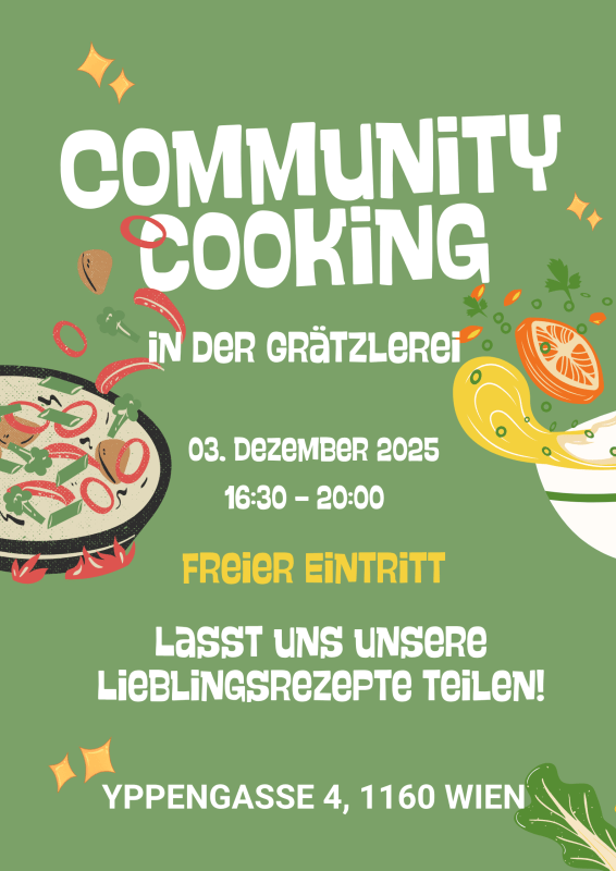 Ziel ist es, Verbindungen im Grätzl zu stärken, Verständnis zu fördern und Bildung durch Begegnung zu ermöglichen. Das Community Cooking ist eine Kooperation zwischen dem Caring Community Collective und der Grätzlerei und findet im Lokal Speisen ohne Grenzen statt.